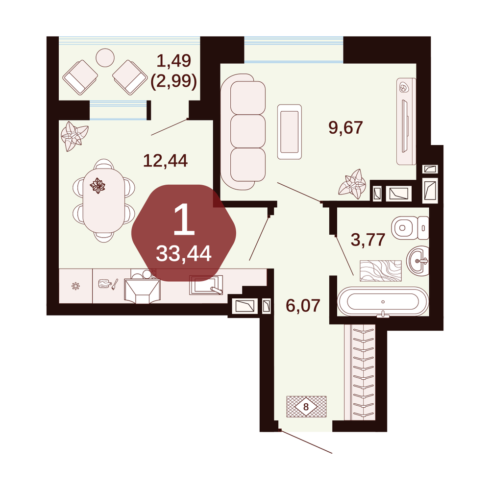 1-комнатная